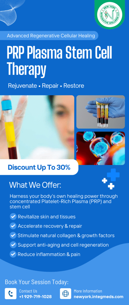 Whether you’re seeking skin rejuvenationhair restoration, or faster recovery from injury or inflammation, PRP Stem Cell Therapy offers a safe, non-surgical, and highly effective solution. It’s a holistic approach that works with your body — not against it — to rejuvenate, repair, and restore your natural vitality.