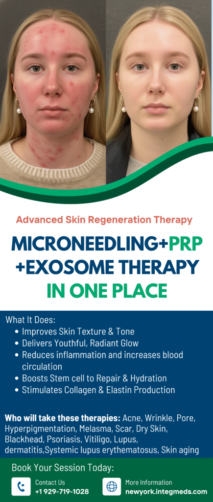 Together, they work synergistically to revitalize dull, tired, or aging skin, reduce fine lines and scars, and restore a smoother, more radiant complexion. Suitable for all skin types, this advanced non-surgical therapy harnesses your body’s own healing power—enhanced by cutting-edge exosome technology—to reveal fresher, younger-looking skin from within.